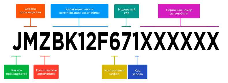 Идентификационный номер содержит три раздела, характеризующих транспортное средство: