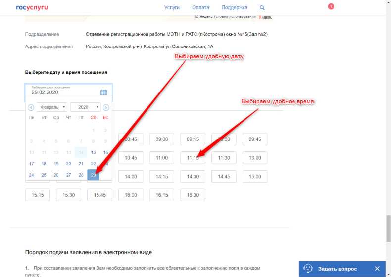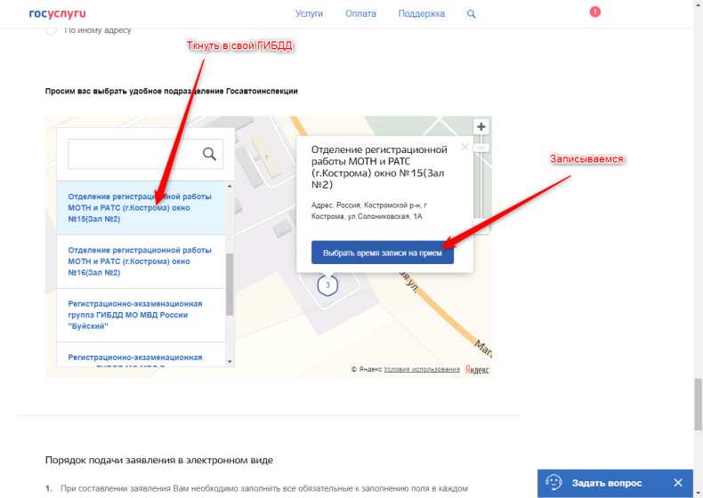 После того, как все данные владельца или доверенного лица на авто заполнены. Отправляется заявление в государственный орган. При этом пользователь выбирает дату и время, в которые ему удобно будет посетить Автоинспекцию. Также портал позволит отследить историю заявления.