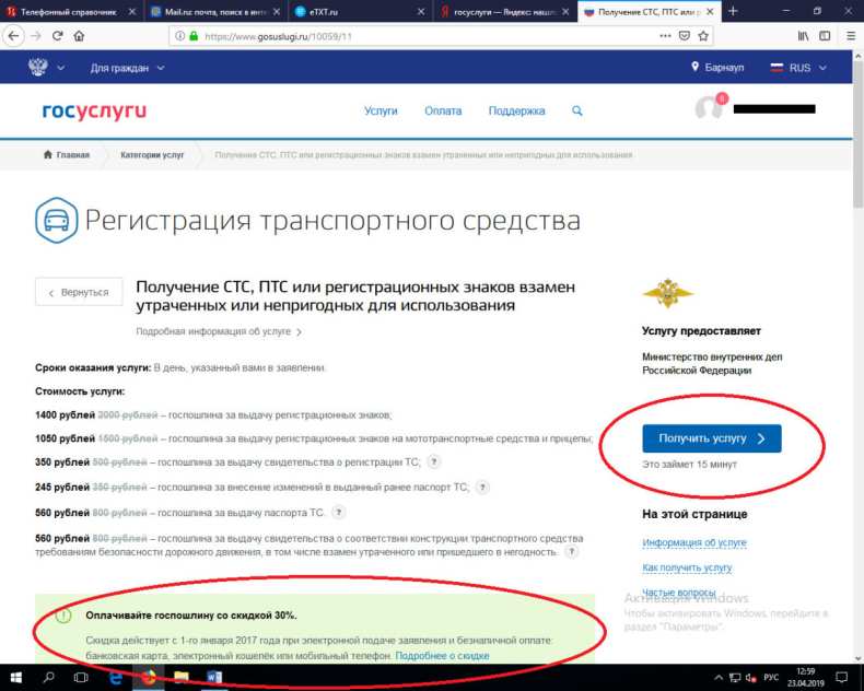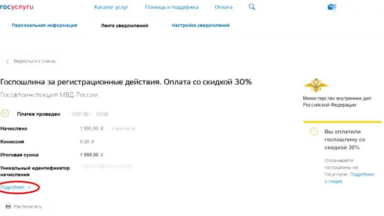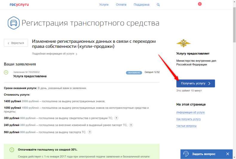 - После этого приложение покажет всю необходимую информацию, начиная от стоимости пошлины на транспорт, заканчивая данными о сроках оказания услуги.