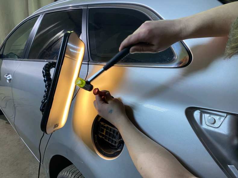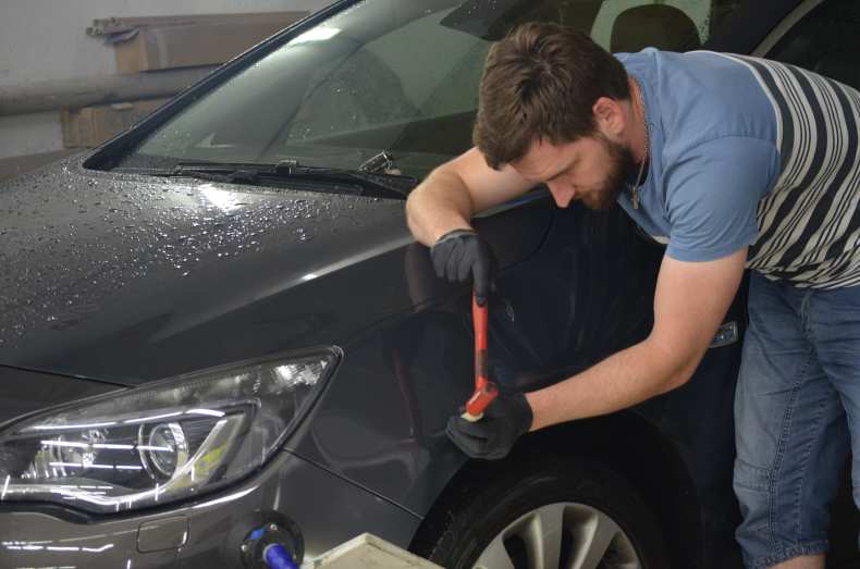 Если на кузове появились небольшие вмятины без повреждения лакокрасочного покрытия, от них можно избавиться несколькими способами.