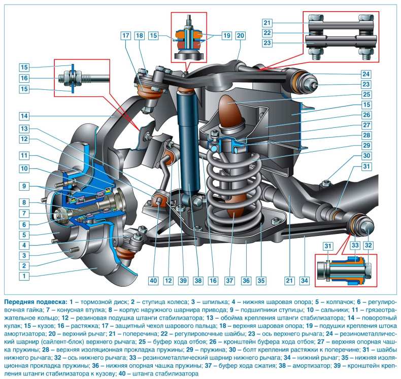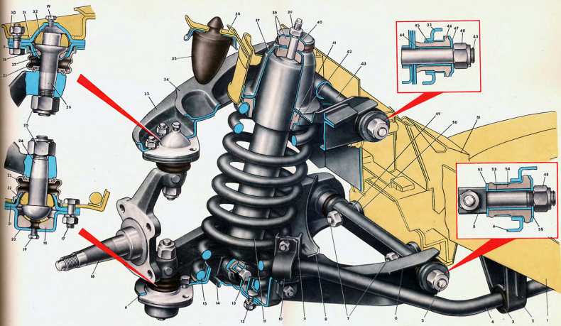 В настоящее время автомобили, которые сейчас выпускаются, имеют переднюю подвеску независимого типа. Она включает целый ряд элементов.