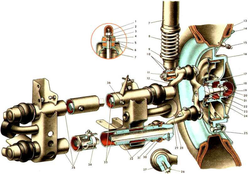 На автомобилях с задним приводом (Волга, Жигули) необходимо открутить гайки, снять амортизатор. Для замены его на переднеприводном ТС необходимо отсоединить стойку амортизатора и поворотный кулак, после чего снять пружину.