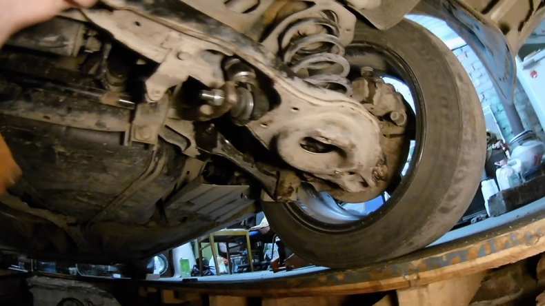 Диагностику нужно проводить с использованием автоподъемника или на худой конец использовать ровную площадку. Чтобы визуально проверить исправность шаровой необходимо повернуть колесо руками или с использованием монтировки.