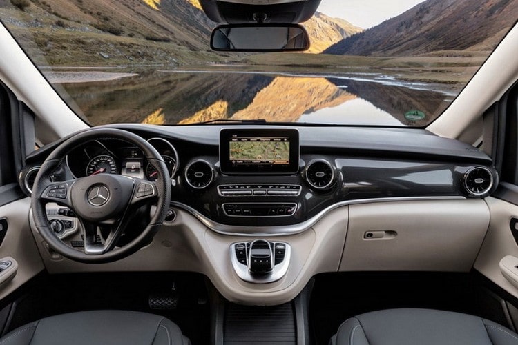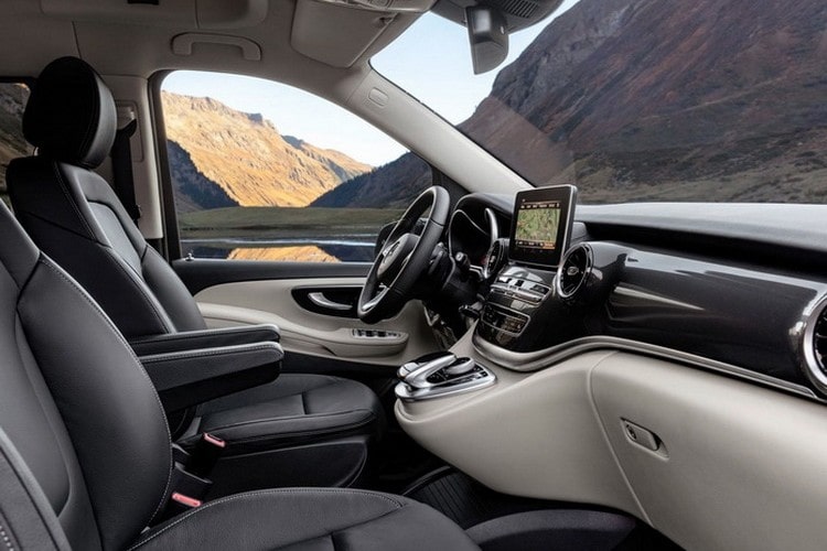 Вставки из пластика и дерева стали красивее, можно отдельно выбирать их цветовую палитру. Отделка салона также кожаная, однако пользователь на выбор может заменит её на более простой кожзаменитель. Также при покупке Мерседеса 2019 года V-класса покупатель сам может выбрать расцветку и оформление салона, благо дизайнеры заранее подготовили несколько версий на выбор.
