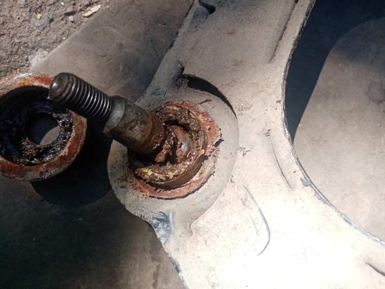 А она быстро приводит к ускоренному износу опорного вкладыша, который какое-то время успел поработать всухую. Не так много времени спустя все-таки придется произвести замену шаровой опоры.