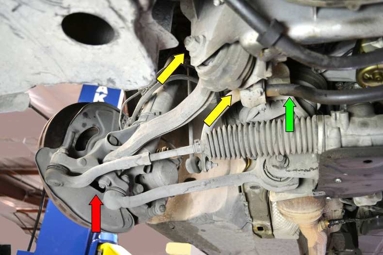 - Когда в шарнирах произошло увеличение люфтов, а они при этом установлены в конструкциях рулевой тяги и наконечниках, то стук может происходить именно по этой причине. Такие неполадки плохо сказываются на управлении транспортным средством, вот почему стоит немедленно приступать к замене этих элементов;