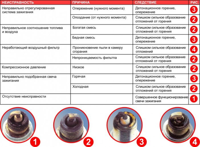 Если свеча имеет небольшое количество сажи — все нормально. А вот если, вынутая свеча, белого цвета или испачкана маслом — значит у вас есть проблемы.