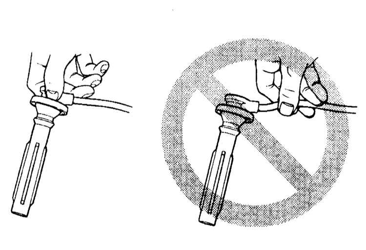 Держите руку на ближайшем расстоянии от свечи, возьмитесь за провод свечи зажигания и потяните его.