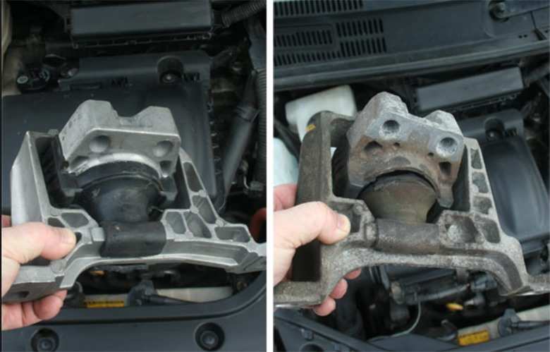 Когда в один из боков двигатель наклоняется немного заметнее, тогда подушку с того бока следует сменить.