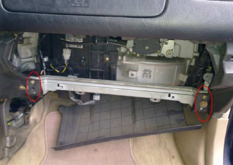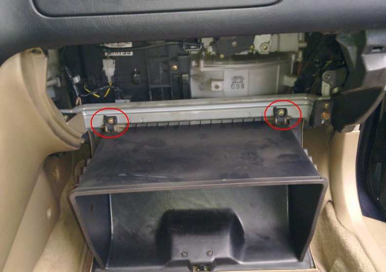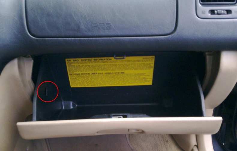 В японских автомобилях доступ к нему часто возможен через бардачок, расположенный перед пассажирским сиденьем. Чтобы добраться до него, достаточно снять бардачок. Для этого его необходимо открутить или разблокировать с помощью соответствующих крючков.