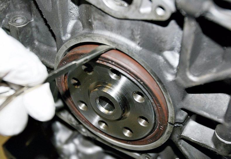 - Если осуществляется смена переднего сальникового устройства коленчатого вала, то стоит сменить и задний.