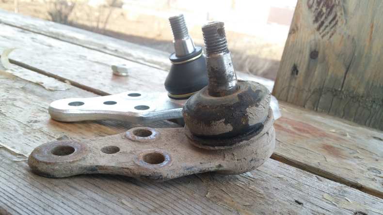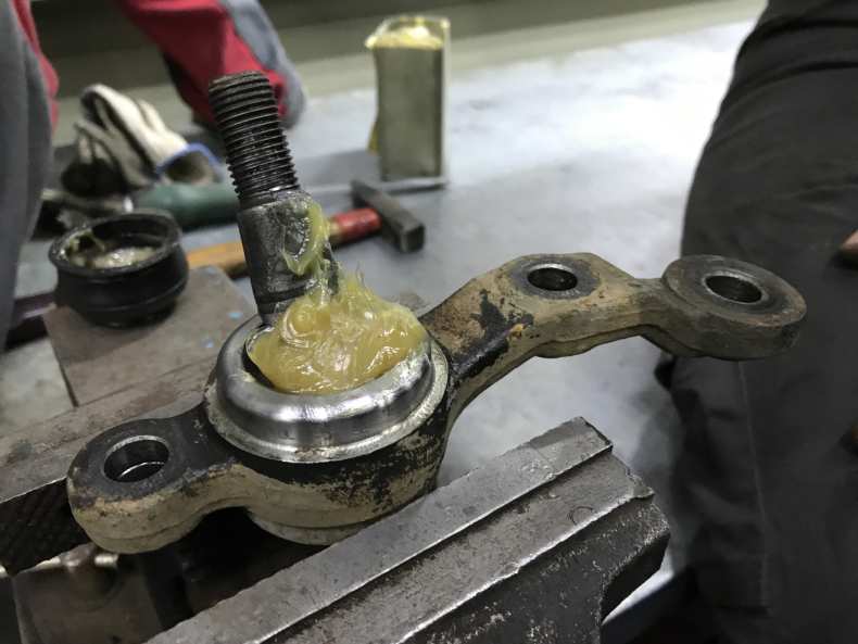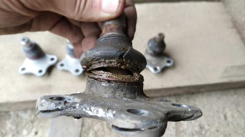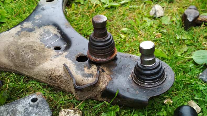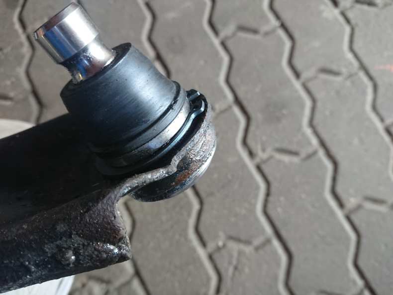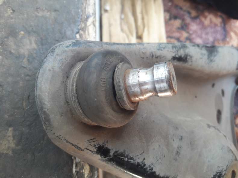 - Теперь необходимо провести зачистку, как шаровой опоры, так и соединительной рычажной части;