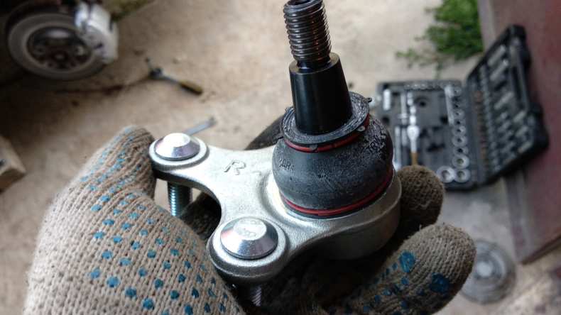 Когда все действия выполнены правильно, то демонтаж шаровой опоры выполняется безо всяких проблем. Новая деталь ставится в обратном порядке.