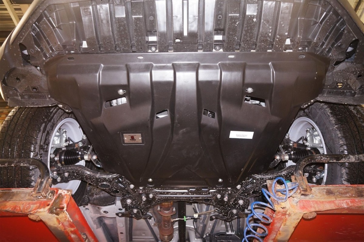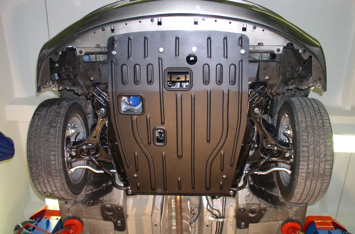 - При наезде на такие предметы, они подскакивают и велика вероятность их попадания в радиатор и иные детали и узлы транспортного средства, поэтому можно обезопасить ДВС. Тем более, что лист металлической защиты ограждает не только картер, но и коробку передач.
