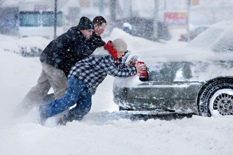 Если ваша машина застряла в снегу, не получится выехать на скорости, даже не пробуйте. Колеса попросту выроют яму под собой, в результате чего выехать будет гораздо сложнее. Сначала необходимо выйти из автомобиля и осмотреть место пробуксовки.