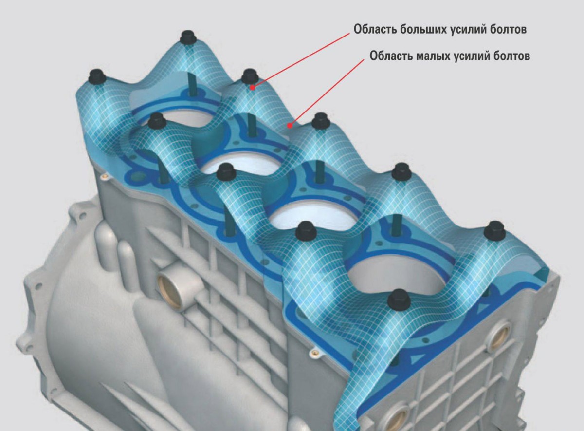 Сложно устроенный элемент подвергается и непростым изменениям конфигурации, из-за чего изготовителю приходится детально продумывать способы затяжки головки блока цилиндров, где наиболее важными является усилие и алгоритм затяжки.