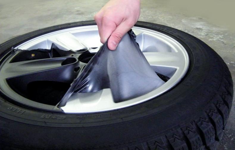 Специалисты рекомендуют предварительно укрывать колёса транспорта. После чего можно равномерно распределять защитный слой на поверхности объемных элементов.