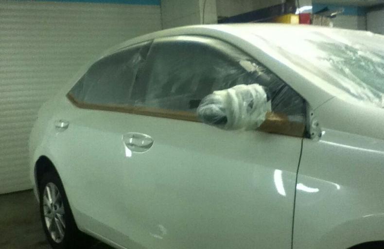 - Предварительное кузов машины тщательно очищают. Для этого достаточно вымыть машину с использованием мыльных составов. После этого автомобиль насухо вытирают и обрабатывай тонким слоем обезжиривателя. Этот состав позволит избавиться от восковых покрытий;
